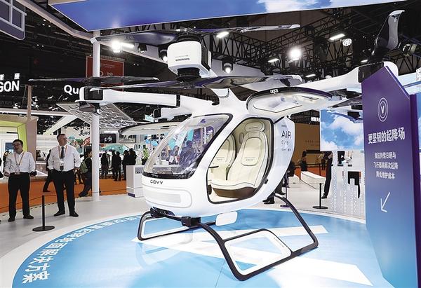 这是11月5日在第八届进博会技术装备展区立邦展台拍摄的“低空飞行全域涂装解决方案”展示。