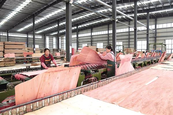 11月2日,淮阳区刘振屯镇板材加工产业园的生产车间里,工人们正在加紧生产订单产品。该产业园建于 2022 年,占地 204 亩,总投资约6 亿元,目前已有富阳装饰、福太新材料、浩瑜木工机械3家企业入驻,实现年利税700余万元,有效推动了该镇板材行业延链补链强链。