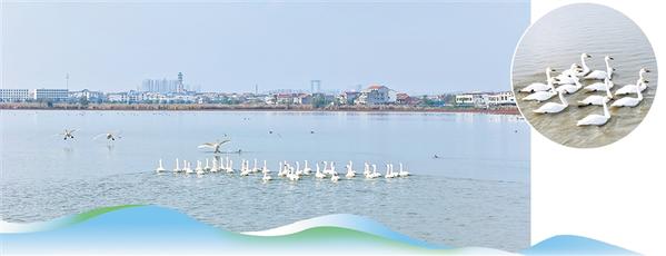 11月10日,在淮阳龙湖国家湿地公园,一群白天鹅在湖面畅游。近年来,由于湿地生态环境持续良好,每年春、冬季,都有白天鹅等候鸟在迁徙途中到这里“歇脚”。 记者 杜欣 通讯员 黄春龙 摄