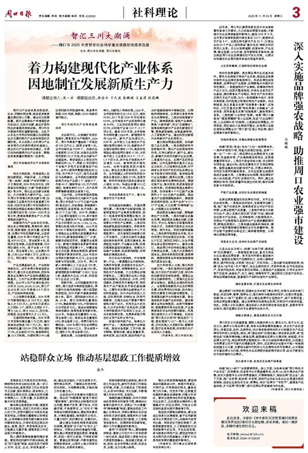 现代化产业体系是实现经济、社会、环境协同发展,推动经济高质量发展的核心引擎,通过优化资源配置、提升全要素生产率增强经济内生动力,为技术创新、就业扩容和民生改善提供持续动能。周口作为中原城市群的重要增长极,正处于从农业大市向加快构建以先进制造业为支撑的现代产业体系转型的关键阶段。本文在深入分析周口产业体系现代化优势和现状的基础上,提出优化产业体系相关建议,为周口加快构建现代化产业体系、赋能经济高质量发展提供一定参考。