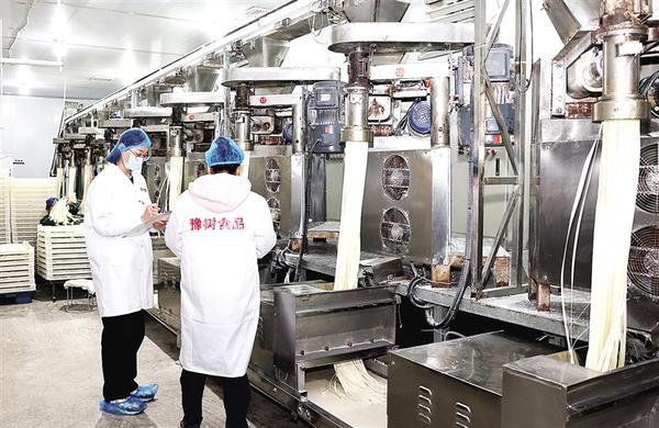 在豫树食品烩面生产车间,一袋袋优质面粉如瀑倾泻,通过智能化生产线完成华丽蜕变,化作根根匀称、色如润玉的烩面。面体如银练翩跹,经精准控制克重后,被有序置入包装,踏上烘干定型之旅。最终,这一盒盒品质上乘的烩面,依托销售网络,被送往千家万户的餐桌。