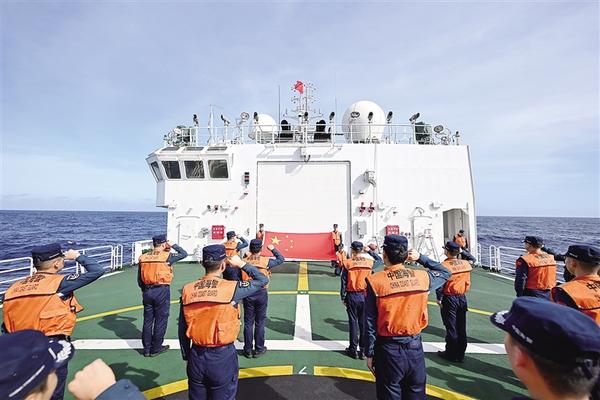 近日,在黄岩岛附近海域执行常态化巡航任务的中国海警黄岩舰执法员举行纪念仪式,为南京大屠杀死难者脱帽默哀。默哀毕,执法员们重温誓词,坚决维护我国海洋权益、捍卫领土主权完整。 新华社记者 贝赫 摄