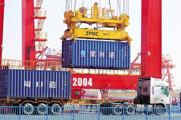1月9日,周口港中心港区中心作业区内,码头岸桥正在进行集装箱吊装作业。