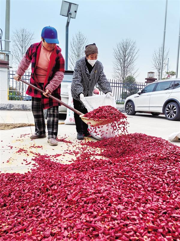1月9日,冬日的西华县红花集镇龙池头村,村民们趁着晴好天气,忙着采摘、晾晒红彤彤的辣椒。龙池头村把辣椒种植作为特色富民产业来培育,通过引进优质品种、推广科学种植技术,让辣椒产业成为带动村民增收的“致富产业”。记者 刘华志 摄