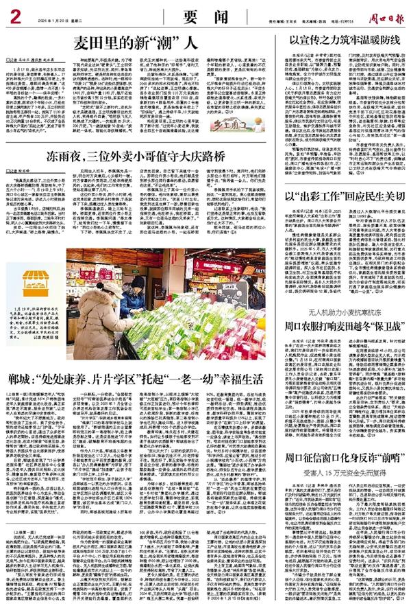 1月17日,商水县平店乡东邓店村的麦田里,麦苗青青,长势喜人。27岁的种粮大户王立明蹲在田埂上,手指拂过麦苗,眉眼间满是笑意:“这400多亩晚播小麦,苗情一点不差!今年咱的目标就一个——保丰促增!”