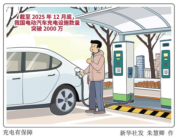 国家能源局1月21日宣布,截至2025年12月底,我国电动汽车充电设施数量达2009.2万个,突破2000万大关,建成全球最大电动汽车充电网络,可支撑超4000万辆新能源汽车充电需求。 新华社发 朱慧卿 作
