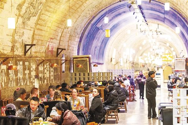1月28日 在重庆市两江新区,外籍人员在防空洞内品尝重庆火锅(1月24日摄)。