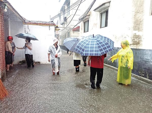 在建新街采访时,记者注意到77岁居民王金英家门前堆放着十几个挡水沙袋。据王金英介绍,这些沙袋是过去为防涝备下的——每逢下大雨,院子就会进水。后来,她的家人就在门口垒起一道挡水台阶,但因她年事已高,上下台阶不便且存在安全隐患,家人便将台阶拆除,改用沙袋临时挡水。王金英指着沙袋说:“现在这些沙袋用不着了,下水道已经全部修通,再也不怕积水了。”