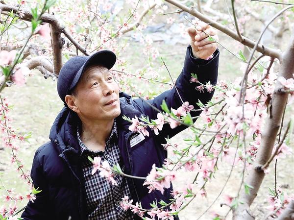2月25日,扶沟县金果农千亩果园的温室大棚内桃花绽放,果农正忙于疏花疏枝,加强春管争丰收。黄金峰 摄