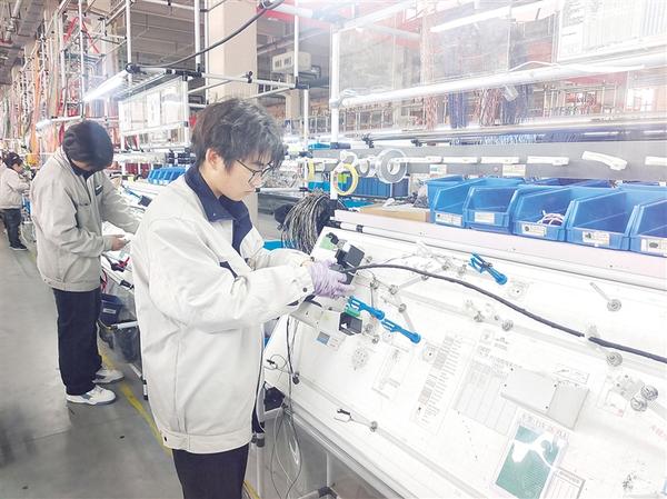 新年伊始,我市众多企业以“开局即冲刺”的劲头按下复工复产“快进键”,全力奋战“开门红”。图为位于淮阳高新区的豪达线束(周口)公司生产车间工人忙碌赶订单。 记者 侯俊豫 摄