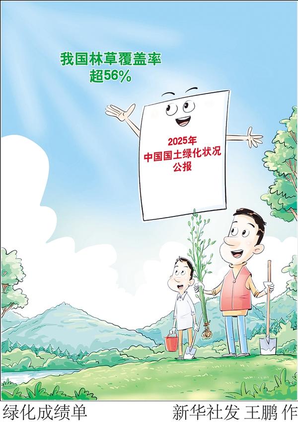 今年3月12日是我国第48个植树节。全国绿化委员会办公室当天发布的2025年中国国土绿化状况公报显示,2025年全国完成营造林356.3万公顷、退化草原修复治理492.7万公顷,森林覆盖率达25.09%、林草覆盖率超56%、森林蓄积量达209.88亿立方米。 新华社发 王鹏 作
