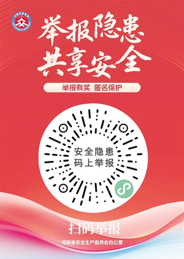 周口市安全生产委员会办公室以举报电话、扫码举报等方式,受理群众举报安全生产非法违法行为线索。一经查实,我们将依据《河南省安全生产领域举报奖励实施办法》相关规定,对举报人予以奖励,最高奖励金额30万元。我们将对举报人个人信息进行严格保密,依法保护举报人的合法权益。