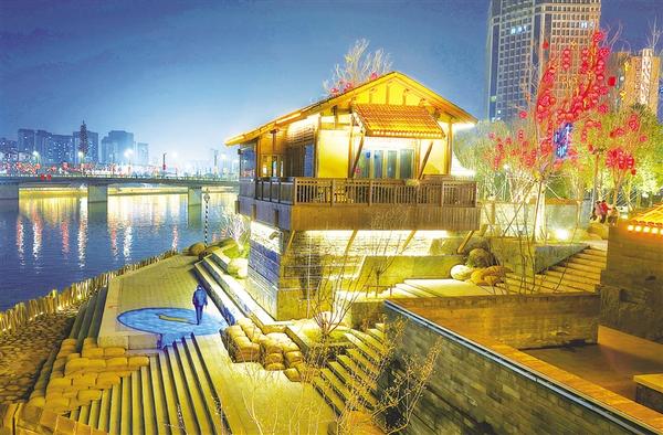 夜色如墨,河水泛着粼粼波光,倒映着对岸高楼与大桥的璀璨灯火。南寨历史文化街区的古渡口旁,红灯笼缀满枝头,勾勒出一幅静谧又繁华的城市夜景。 葛家林 摄