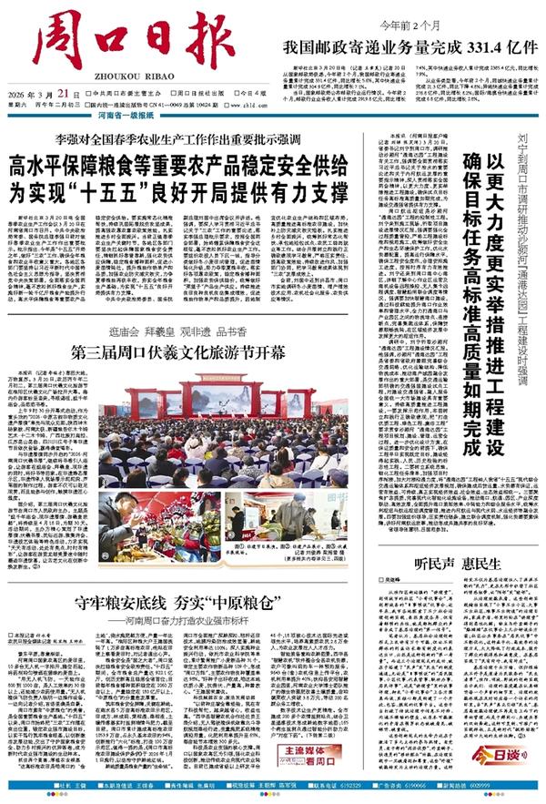 本报讯 (记者 李瑞才) 春回大地,万物复苏。3月20日,农历丙午年二月初二,第三届周口伏羲文化旅游节在淮阳区伏羲文化广场拉开大幕。海内外游客纷至沓来,寻根谒祖,逛千年庙会,品悠悠书香。