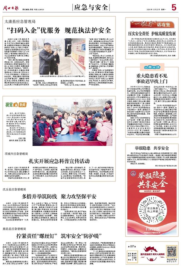 本报讯 (记者 王凯 通讯员 李巍 文/图) 近日,为深入贯彻落实省、市关于优化营商环境的决策部署,全面落实《河南省优化营商环境条例》及“扫码入企”相关工作要求,太康县应急管理局在安全生产执法检查中全面推行“扫码入企”工作机制,以“数字赋能”规范执法行为,为企业发展营造“无事不扰、有需必应”的良好环境。