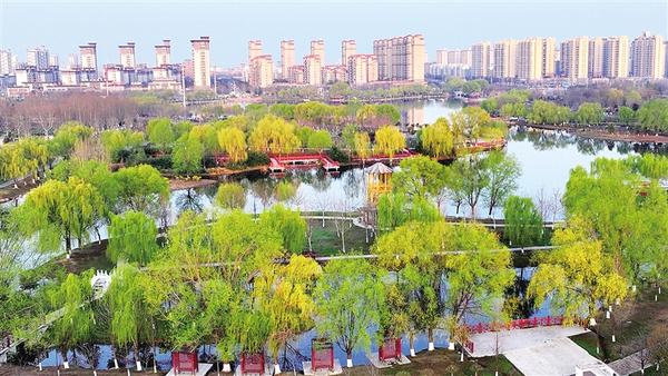 春分时节,扶沟县人民公园春光如画,柳丝轻拂碧水,廊道婉转曲折,满目诗情画意。