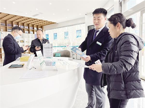 近日,农行周口分行聚焦金融“五篇大文章”,组织营业网点工作人员向客户发放宣传折页,讲解“住房贷款”“微捷贷”等金融产品。图为农行周口颖河支行工作人员为客户答疑解惑。 王卫华 石艳青 摄