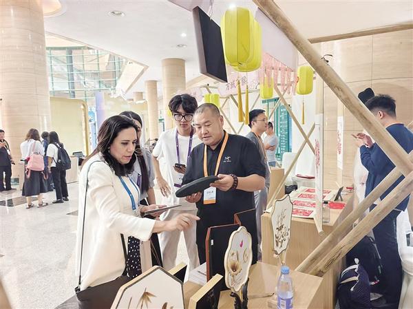 “芦苇画的精髓在于‘化平凡为神奇’。龙湖芦苇是最好的原料,每一根芦苇的纹理、色泽都独一无二,这也是芦苇画不可复制的魅力。”展区内,淮阳芦苇画国家级非遗工坊负责人葛磊向游客介绍。据了解,葛磊创办的非遗工坊创新推出“非遗+助残”模式,将残疾人士作为重点帮扶对象,通过免费培训、提供就业岗位等方式,让非遗技艺成为助力民生改善的重要力量 。