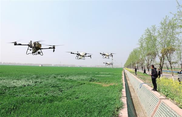 不仅农技护航,科技赋能更让麦田春管效率大幅提升。在太康县马厂镇的麦田里,种粮大户王强正熟练操控植保无人机喷施防控药剂。“无人机一小时能喷百余亩,效率是人工的几十倍,药剂喷施均匀,防控效果更佳。”他流转的1000多亩麦田,今年全部采用无人机飞防模式,精准防控拔节孕穗期高发病虫害。而在周口国家农高区,科技赋能更显精准,无人机搭载多光谱设备为麦田进行“CT扫描”,精准捕捉病虫害初期征兆,让传统春管从“靠经验”转向“靠数据”,为小麦生长保驾护航。