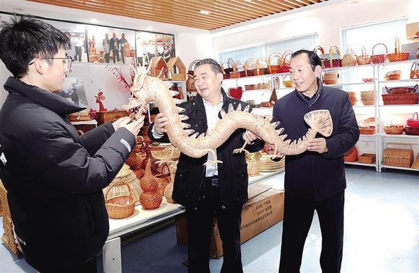 柳编加工点内,农户熟练编织簸箕、筐篮等工艺品,红芽柳条变身增收“金枝玉叶”。