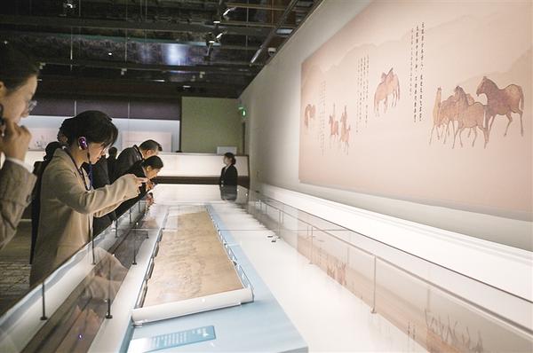 4月21日,观众参观展览。 4月21日,“神骏:故宫书画艺术中的马世界”展在北京故宫博物院开幕。展览展出55件与马相关的院藏珍贵书画,展现马的神骏之姿,展示传统文化魅力。 新华社记者 金良快 摄
