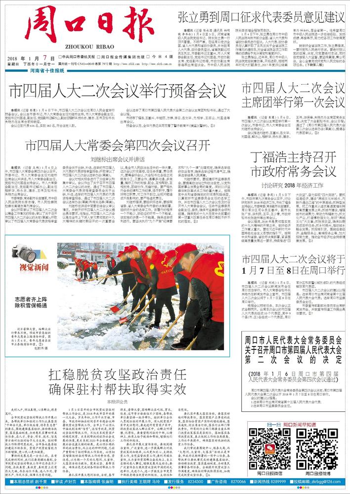 市四届人大二次会议将于 1月7日至8日在周口举行