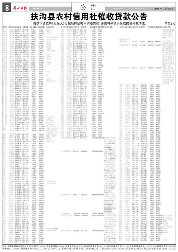 扶沟县农村信用社催收贷款公告