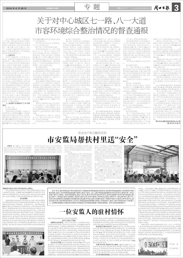 关于对中心城区七一路、八一大道市容环境综合整治情况的督查通报