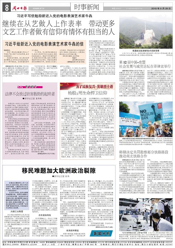 继续在从艺做人上作表率 带动更多文艺工作者做有信仰有情怀有担当的人