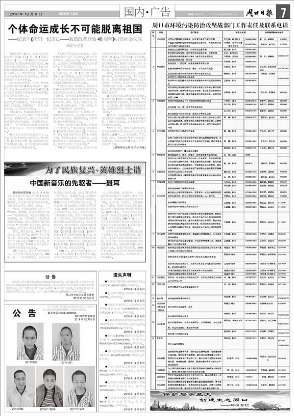 周口市环境污染防治攻坚战部门工作责任及联系电话