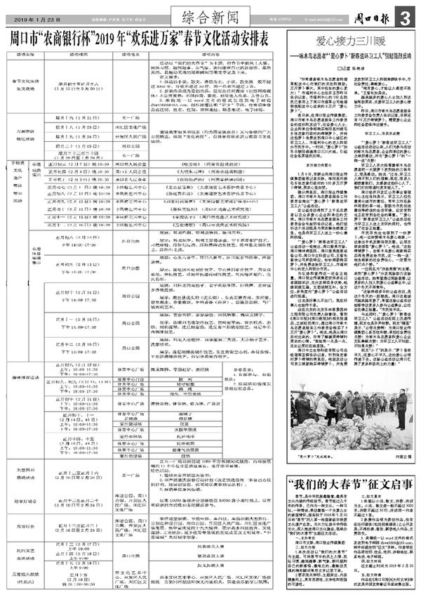周口市“农商银行杯”2019年“欢乐进万家”春节文化活动安排表