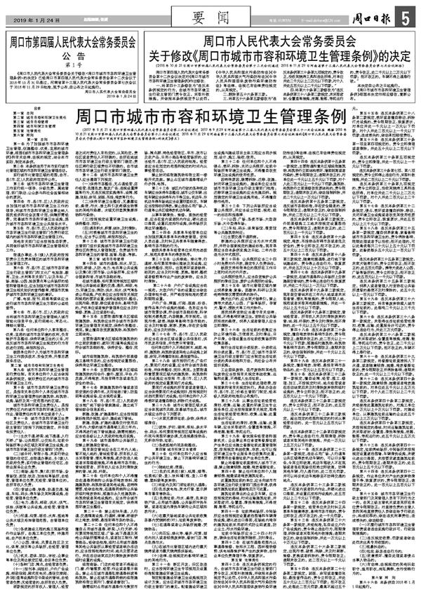 周口市人民代表大会常务委员会关于修改《周口市城市市容和环境卫生管理条例》的决定