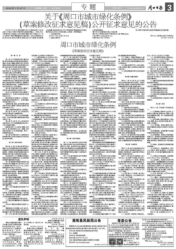 关于《周口市城市绿化条例》(草案修改征求意见稿)公开征求意见的公告