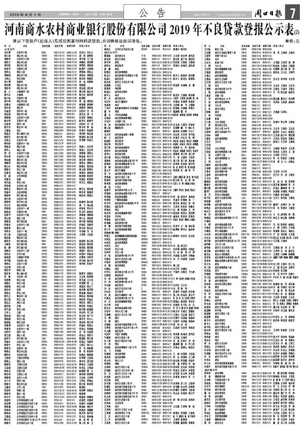 河南商水农村商业银行股份有限公司2019年不良贷款登报公示表(2)