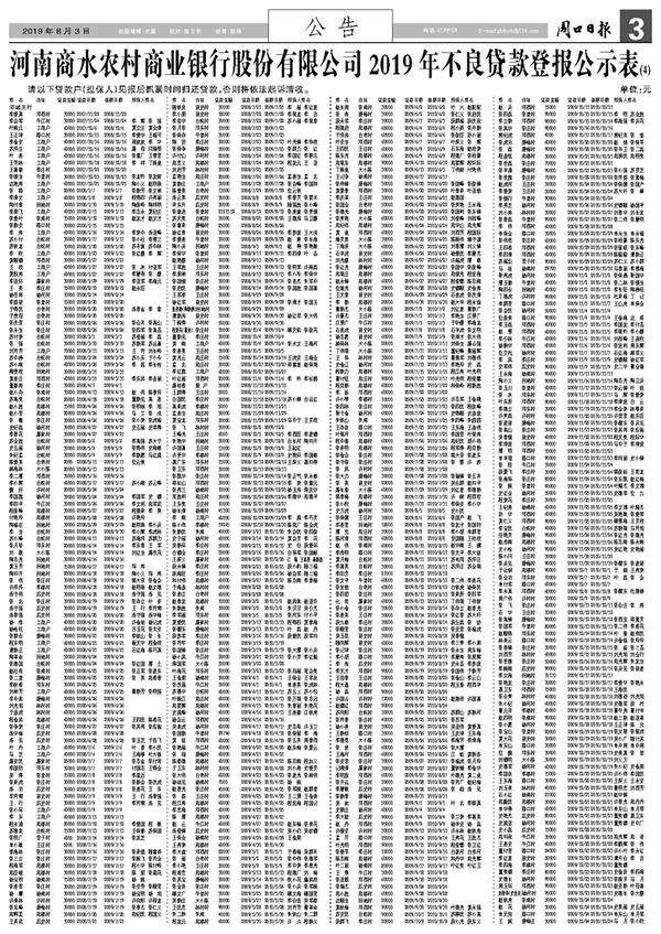 河南商水农村商业银行股份有限公司2019年不良贷款登报公示表(4)