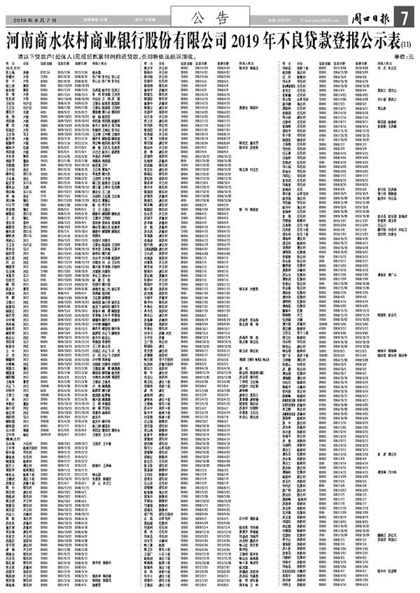 河南商水农村商业银行股份有限公司2019年不良贷款登报公示表(11)