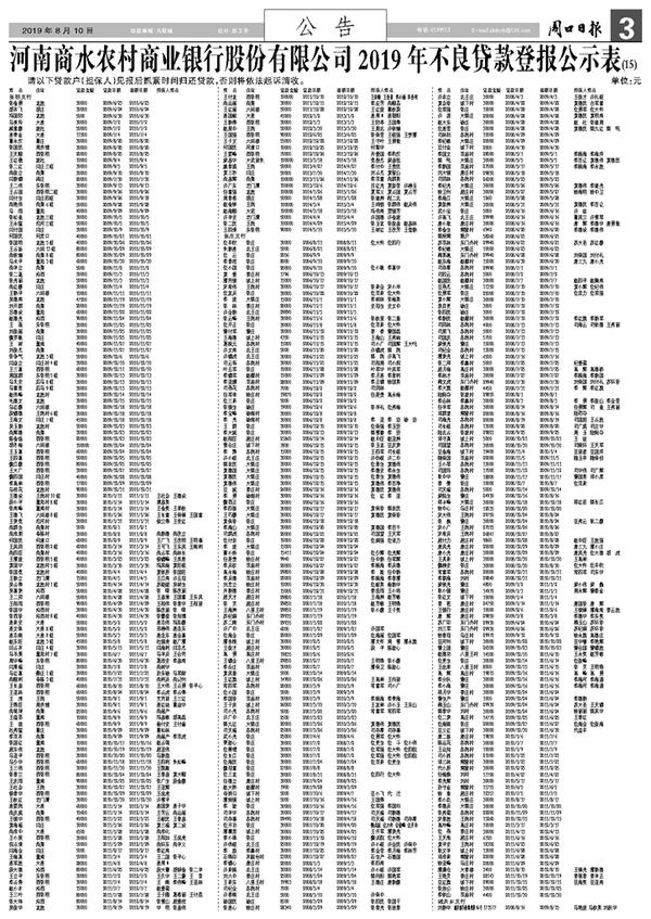 河南商水农村商业银行股份有限公司2019年不良贷款登报公示表(15)