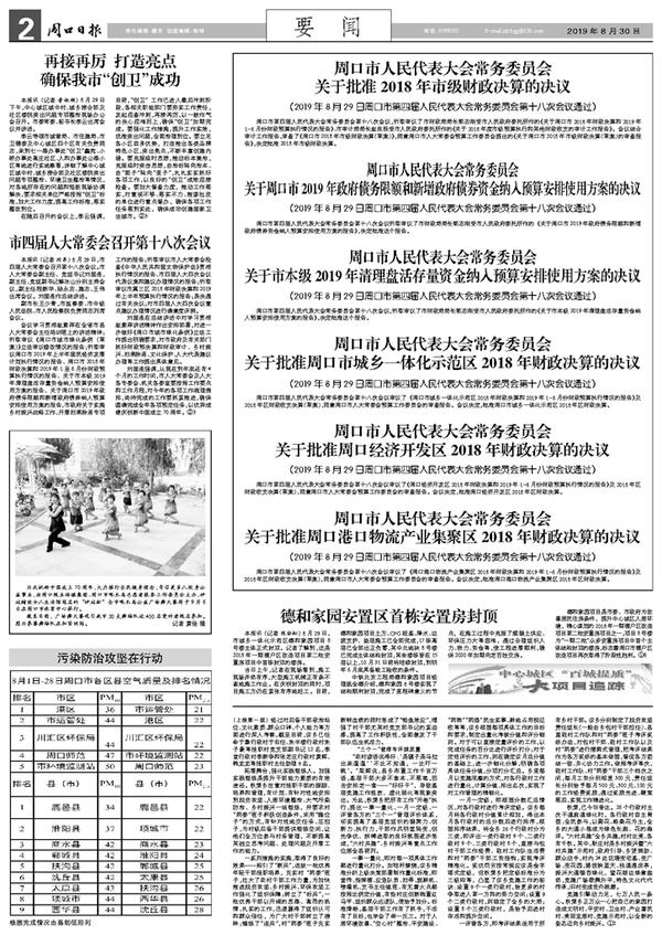 周口市人民代表大会常务委员会关于批准2018年市级财政决算的决议