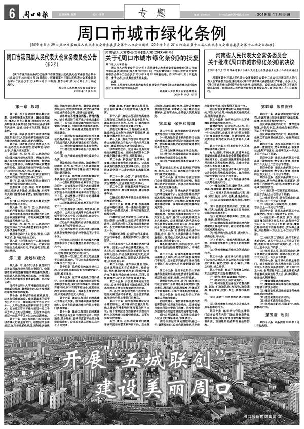 河南省人民代表大会常务委员会关于批准《周口市城市绿化条例》的决议