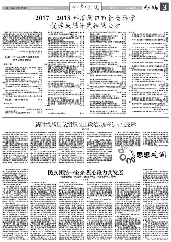 2017—2018年度周口市社会科学优秀成果评奖结果公示
