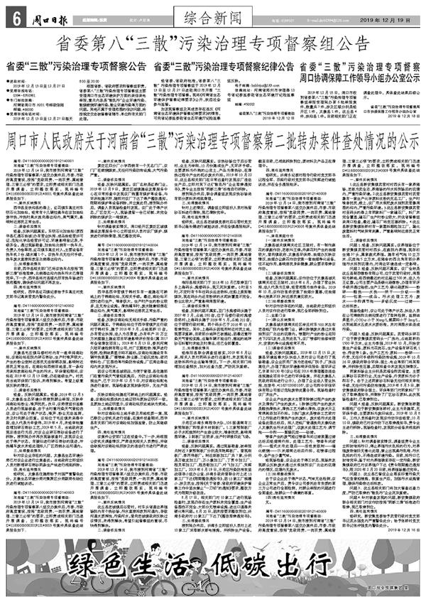 周口市人民政府关于河南省“三散”污染治理专项督察第二批转办案件查处情况的公示