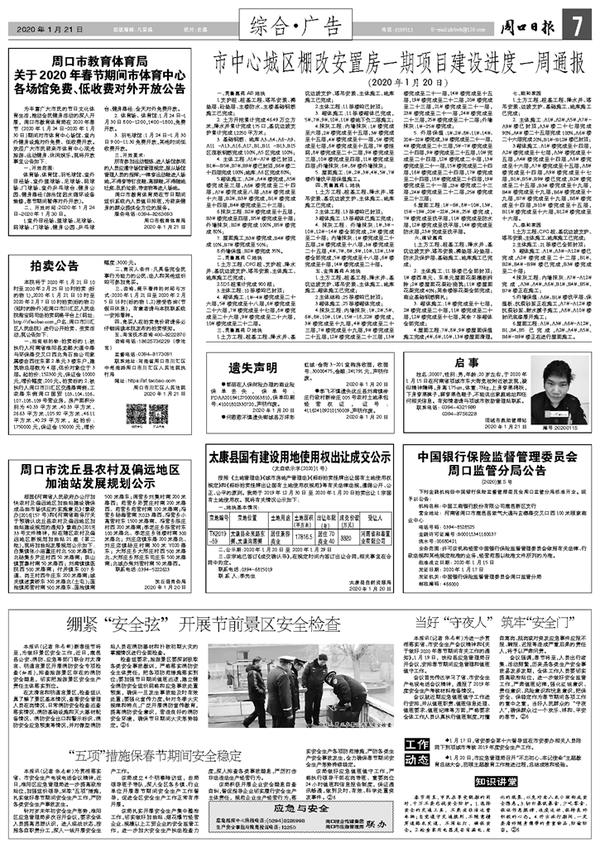 中国银行保险监督管理委员会周口监管分局公告