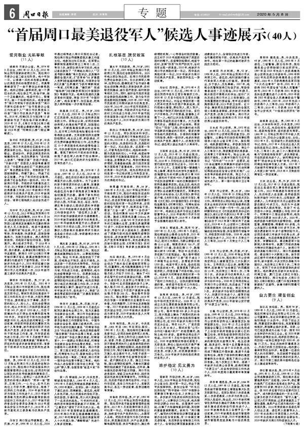 “首届周口最美退役军人”候选人事迹展示(40人)