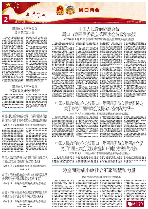 中国人民政治协商会议 周口市第四届委员会第四次会议政治决议