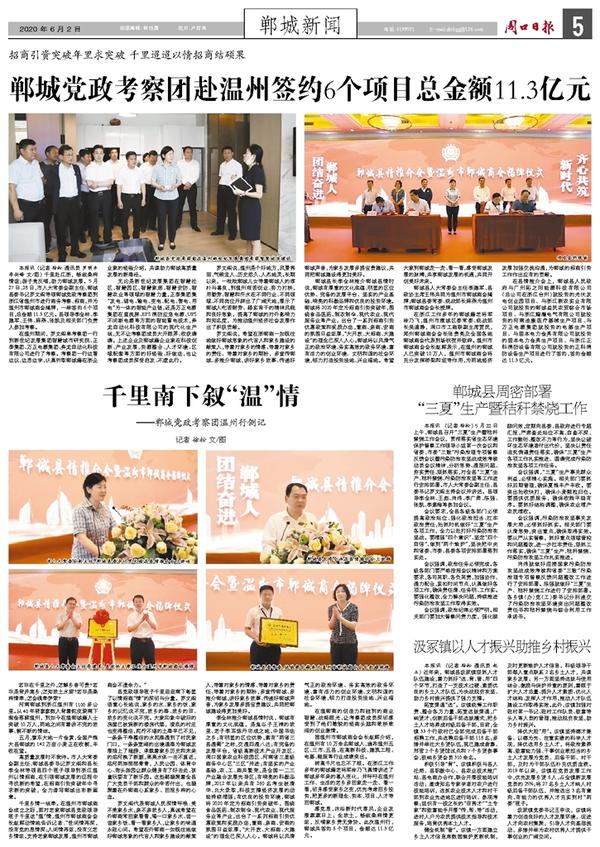 郸城党政考察团赴温州签约6个项目总金额11.3亿元