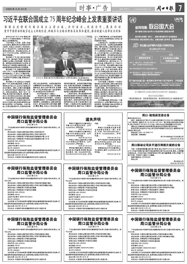 习近平在联合国成立75周年纪念峰会上发表重要讲话