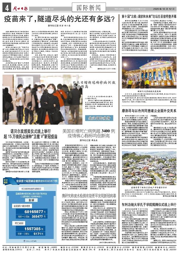 诺贝尔奖颁奖仪式线上举行 超15万俄民众接种“卫星V”新冠疫苗