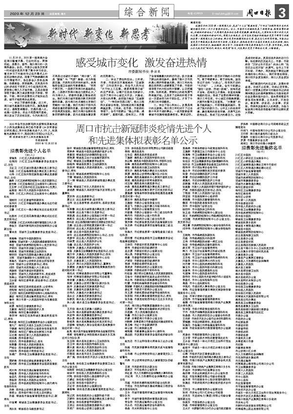 周口市抗击新冠肺炎疫情先进个人和先进集体拟表彰名单公示
