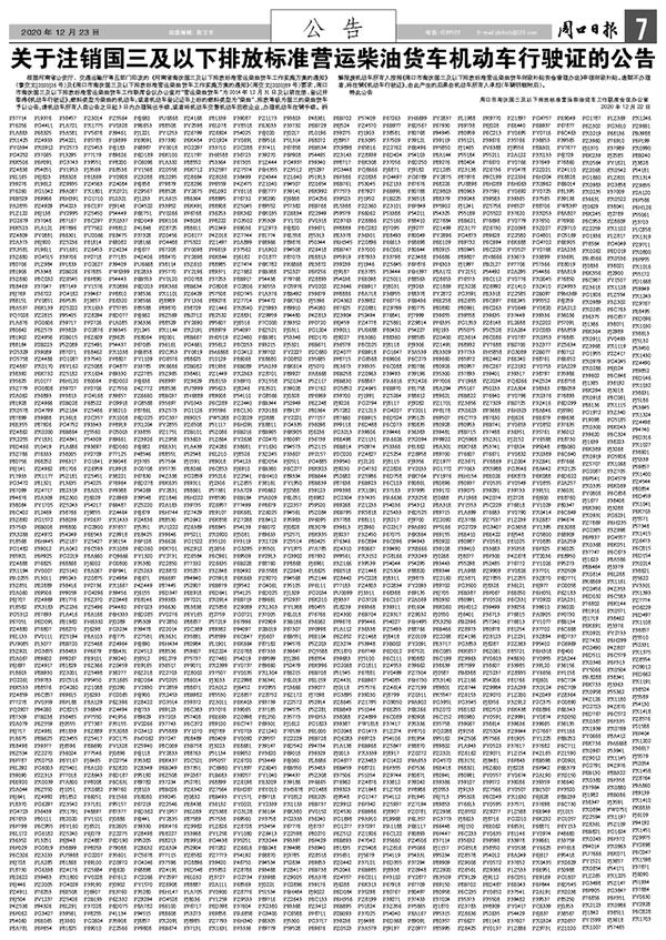 关于注销国三及以下排放标准营运柴油货车机动车行驶证的公告