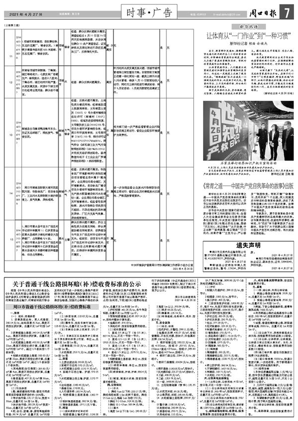 关于普通干线公路损坏赔(补)偿收费标准的公示